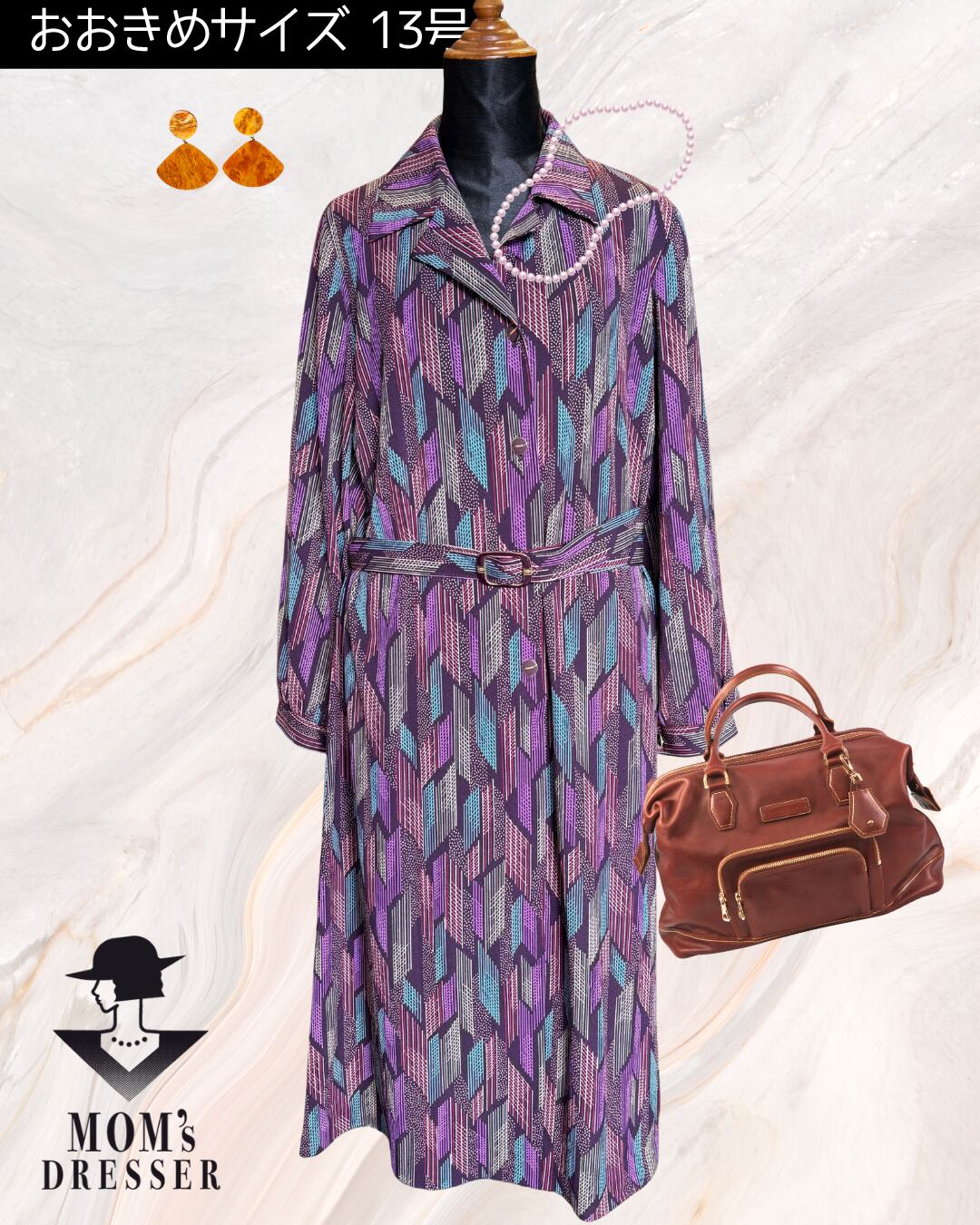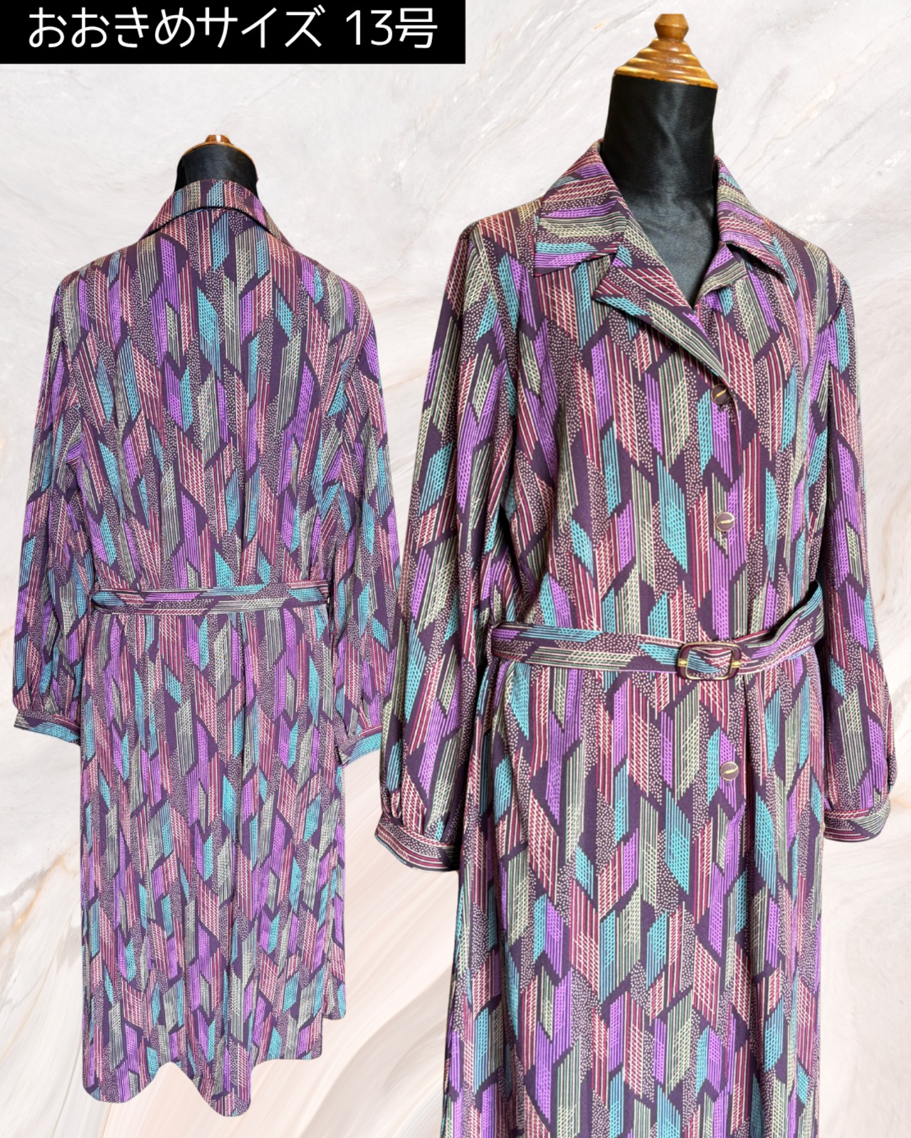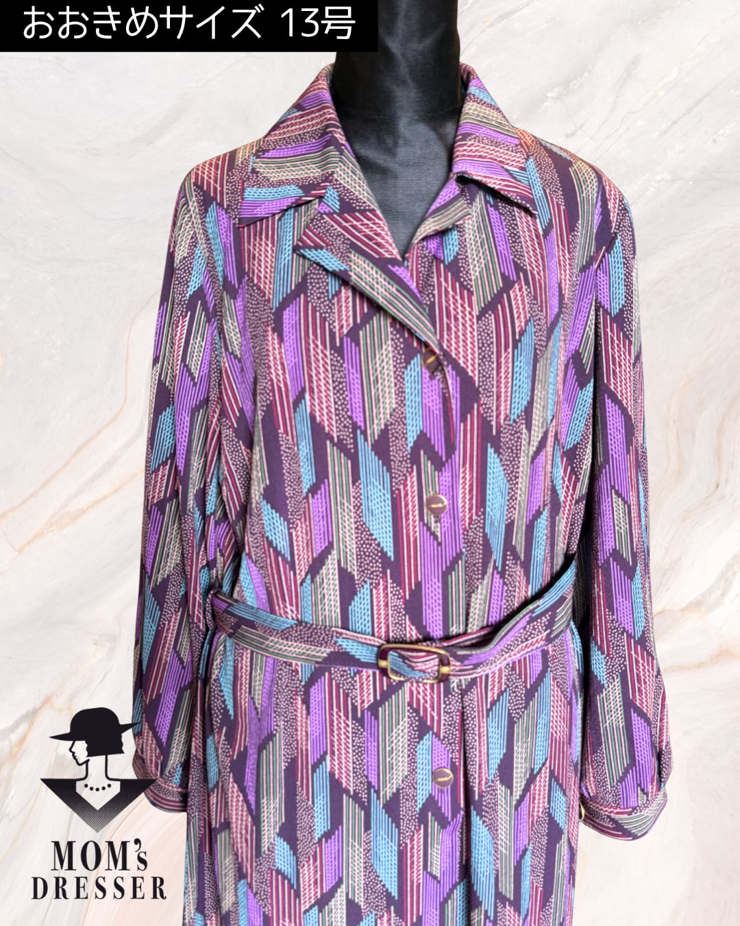 【大きめサイズ】70sレトロ パープルワンピースで魅力的な夏スタイルを!