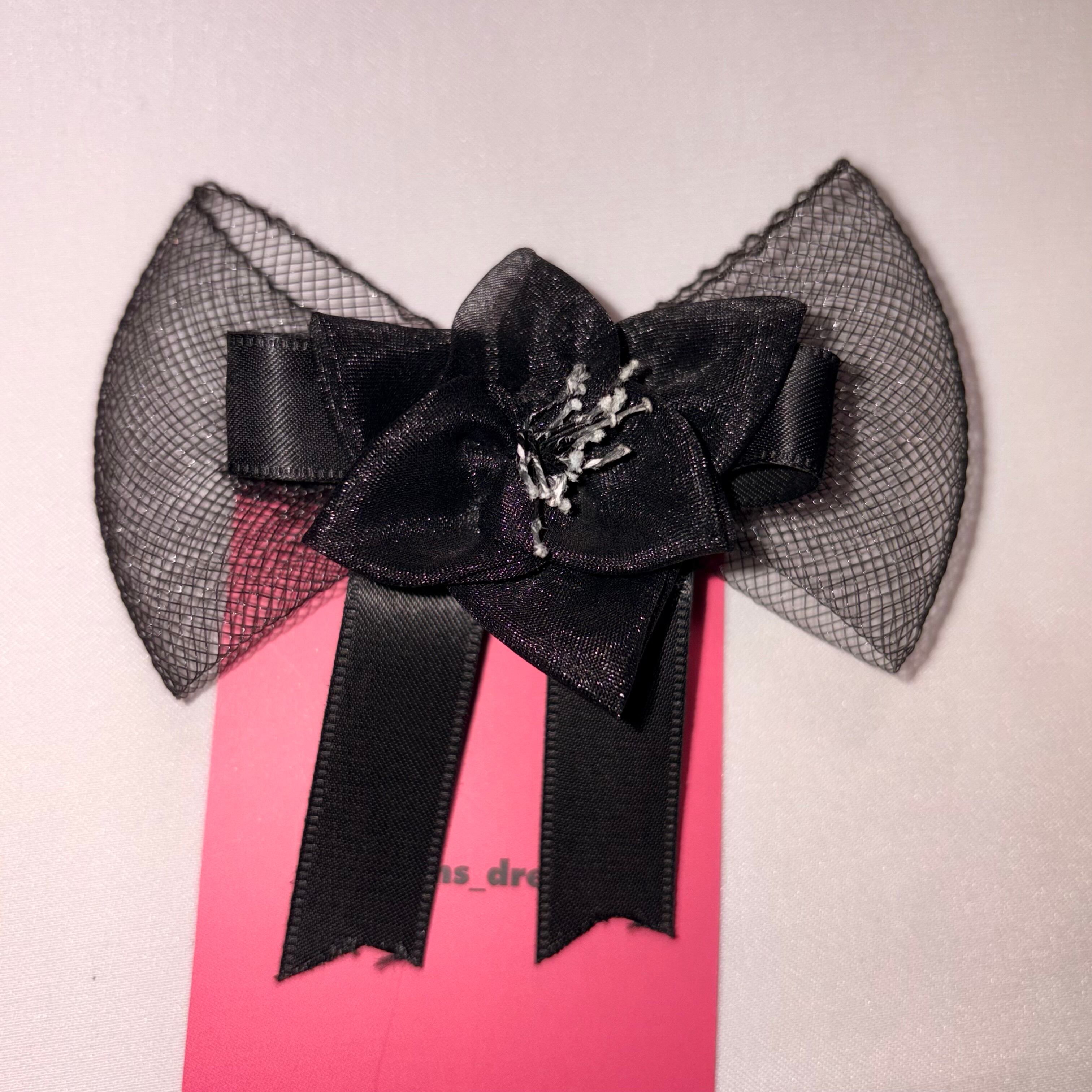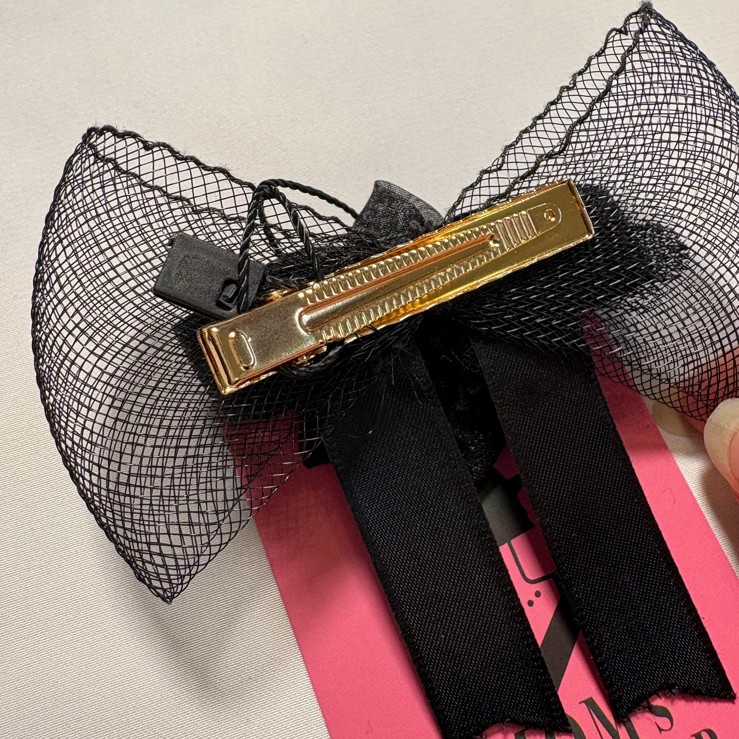 美しいレース素材を使用したこのリボンは、クラシカルなデザインが特長です。ヘアアクセサリーとして華やかさを添えるだけでなく、留め方がクリップ式なので簡単に着脱できます。