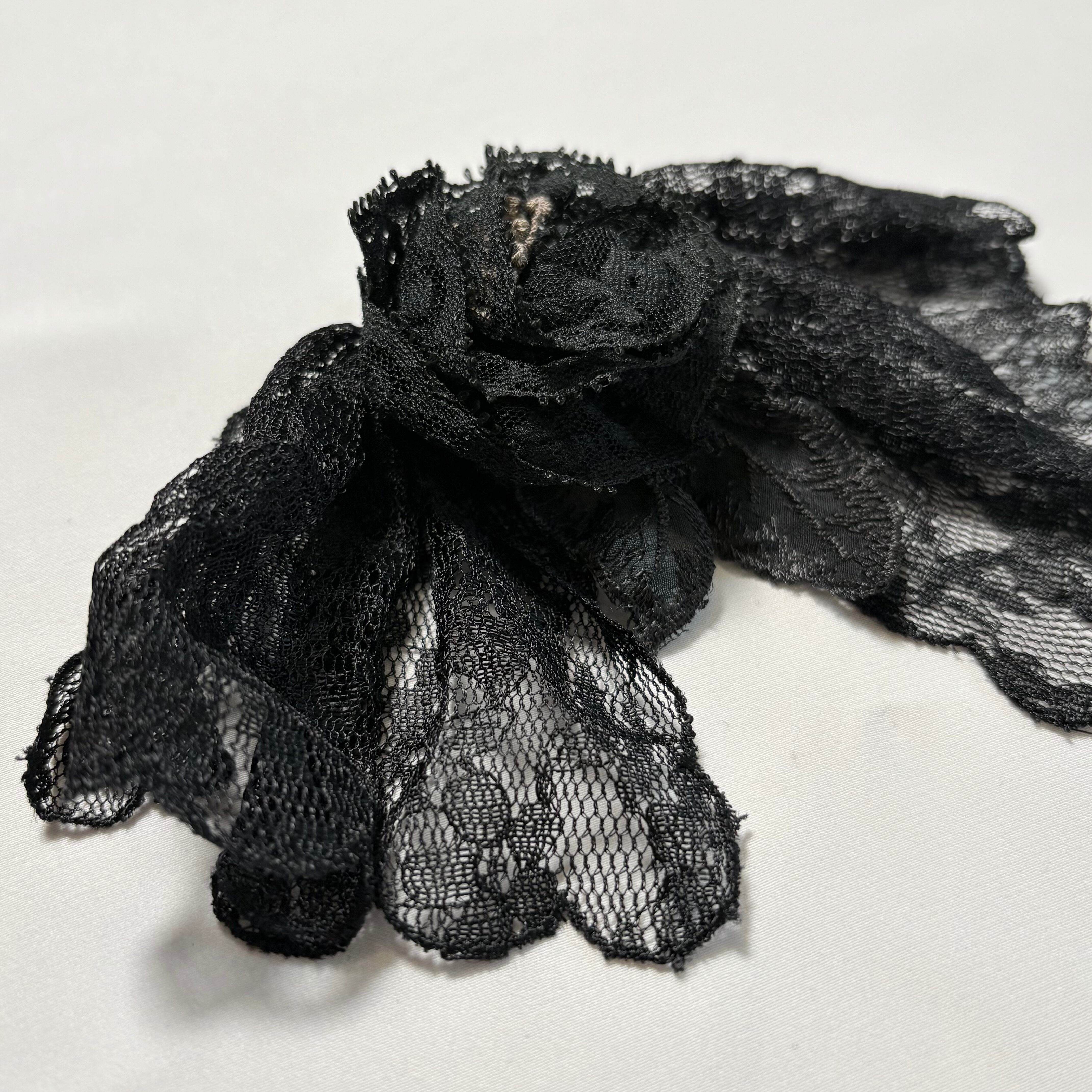美しいレース素材を使用したこのリボンは、クラシカルなデザインが特長です。ヘアアクセサリーとして華やかさを添えるだけでなく、留め方がクリップ式なので簡単に着脱できます。
