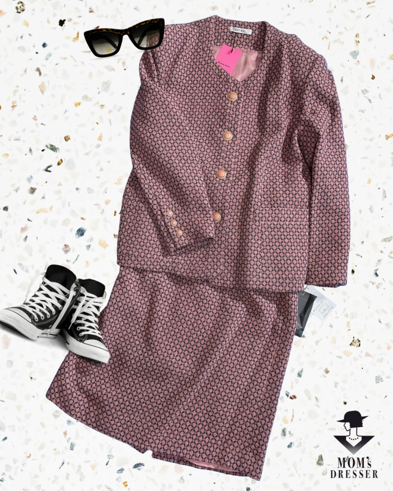 【Lサイズ】90年代スクールガール風、くすみピンクのセットアップ