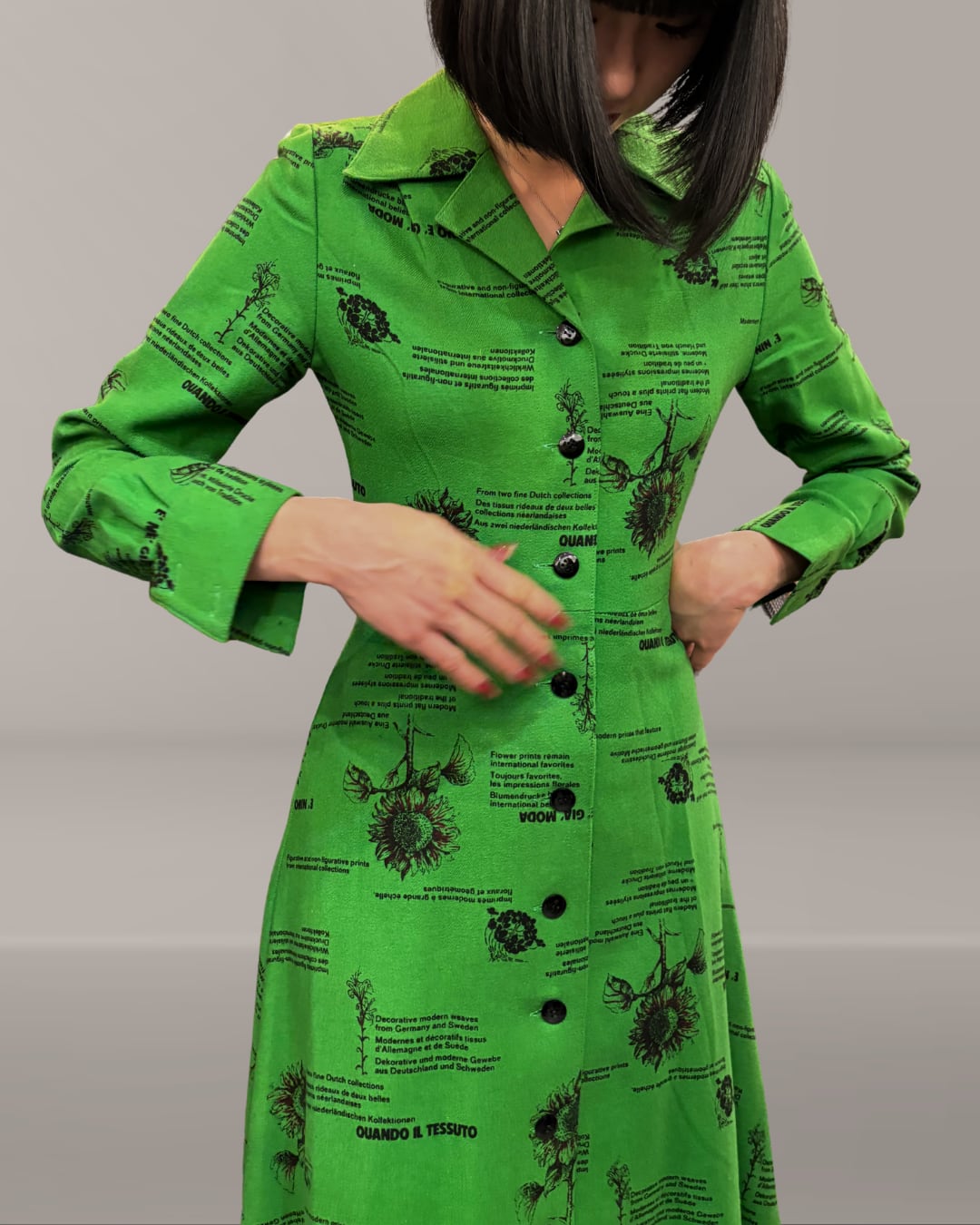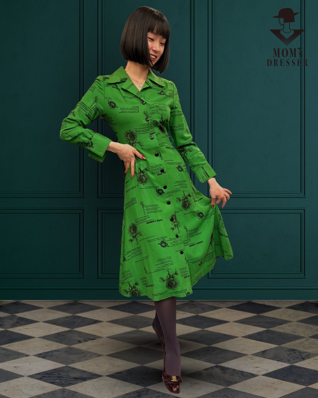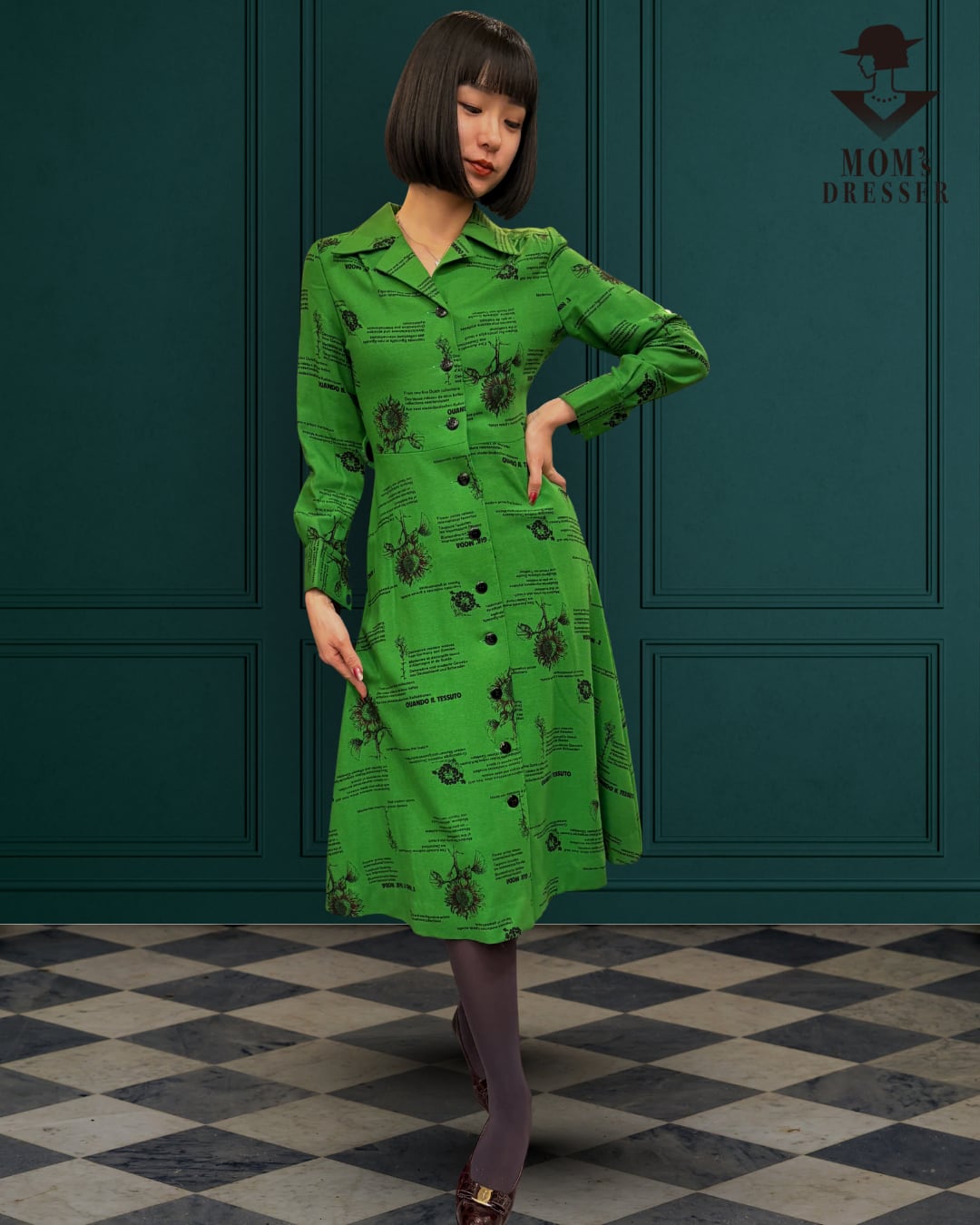 ■ レトロな花柄が映えるグリーンレトロワンピース!