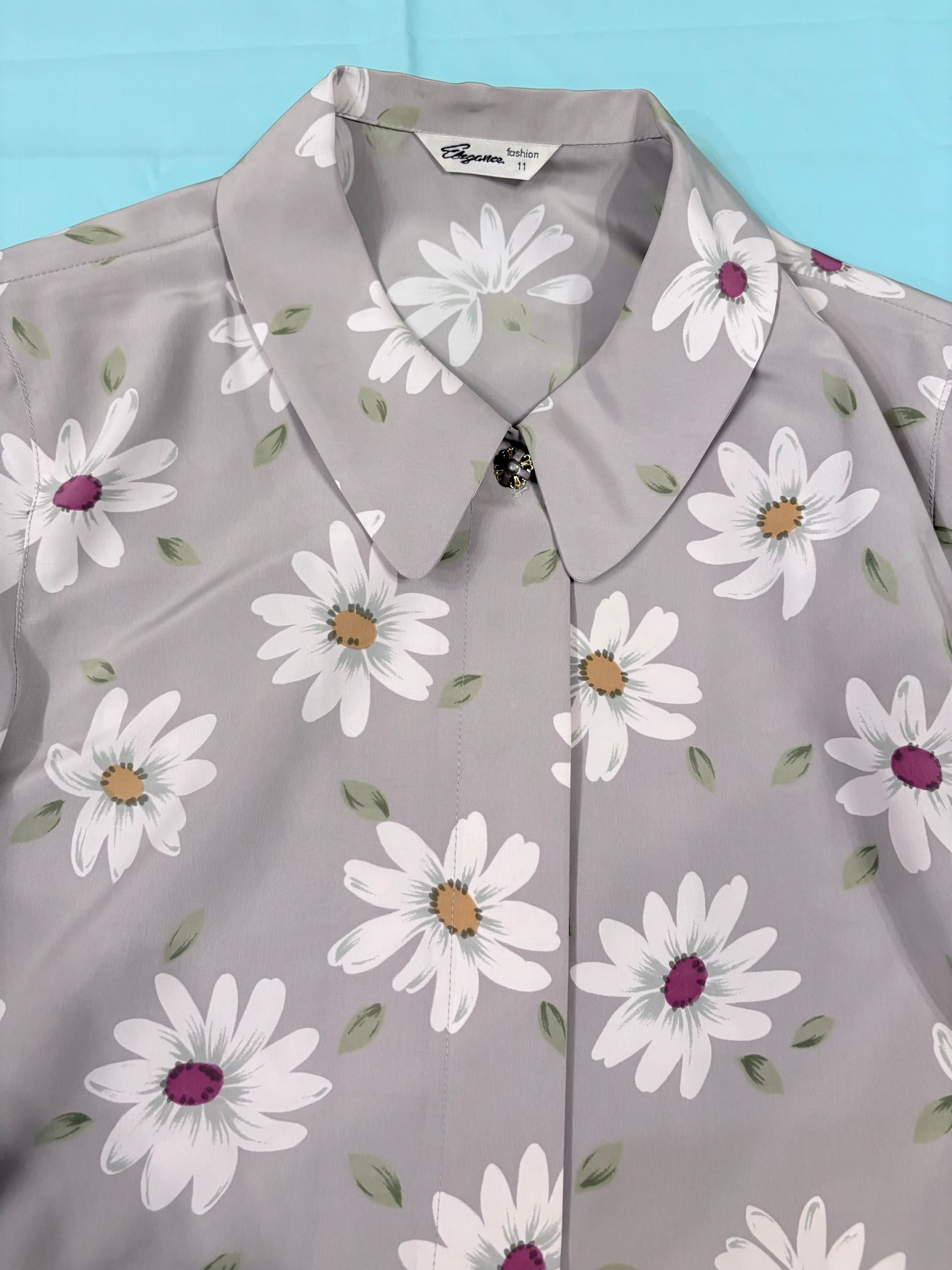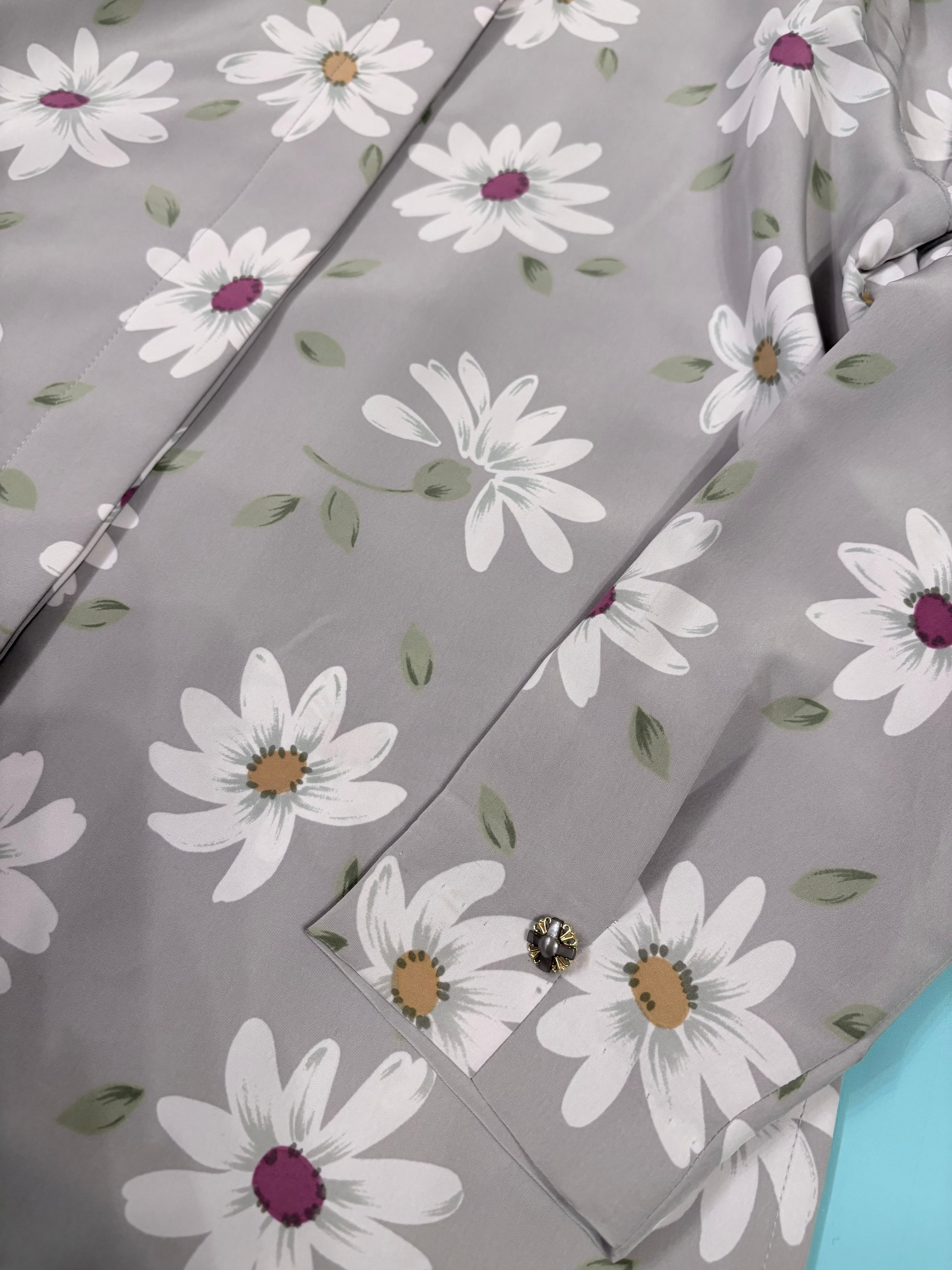 この花柄ブラウスは、軽やかなポリエステル素材を使用しており、しわになりにくいのが特長です。独特な裏付けボタンデザインが魅力的で、シンプルなグレーの色合いは様々なコーディネートに合わせやすく、春のお出かけにぴったりです!ぜひ、このブラウスを取り入れて、華やかなスタイルを演出してください。