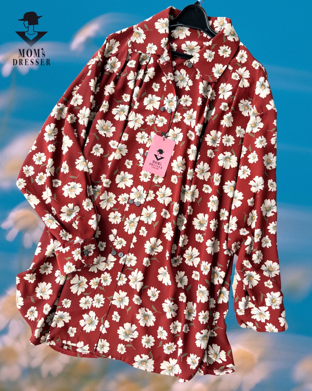 ■ 【大きめサイズ】お尻すっぽり隠れる!落ち着いた赤の花柄ブラウスで優雅なコーディネートを楽しもう!