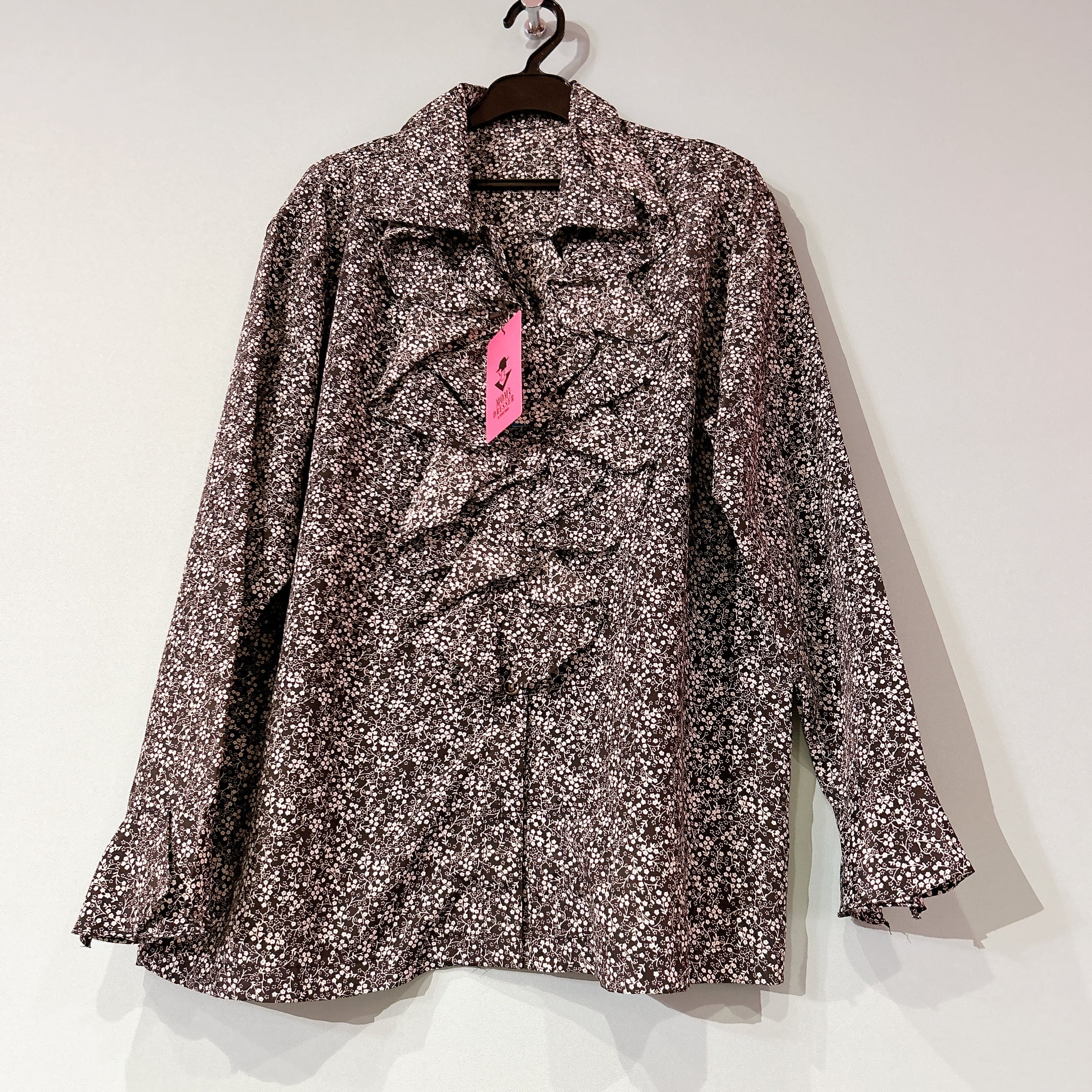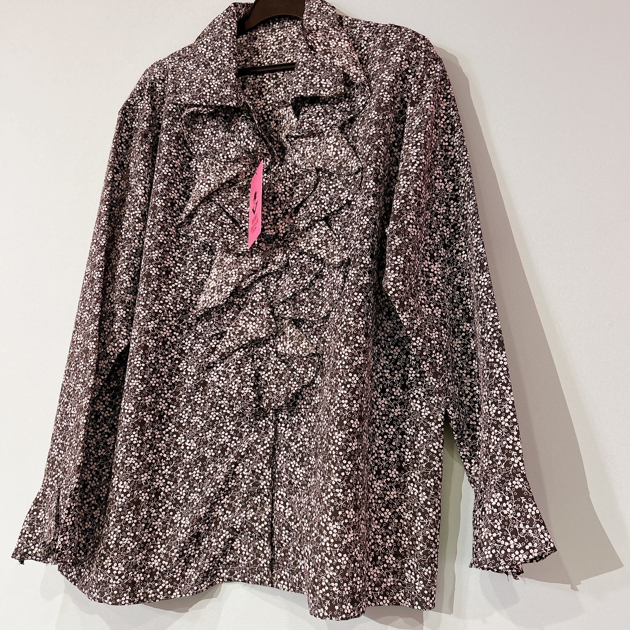 エレガントなデザインが際立つオスカルフリルブラウス。袖口が末広がりになっており、動くたびに華やかな印象を与えます。また、胸元の豪華なフリルは、シンプルなボトムスとの相性が抜群です。カジュアルな黒いパンツと合わせることで、スタイルが一層引き立ちます。