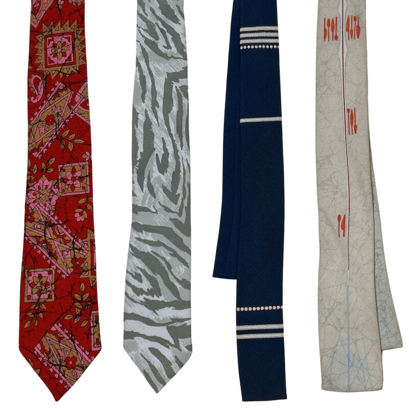 これらのデッドストックネクタイは、昔の風合いと新しい感覚が絶妙に融合した一枚。レトロな柄や色使いが、おしゃれの幅を広げてくれること間違いなし!どんなシーンでも存在感を放つこと間違いなしです。